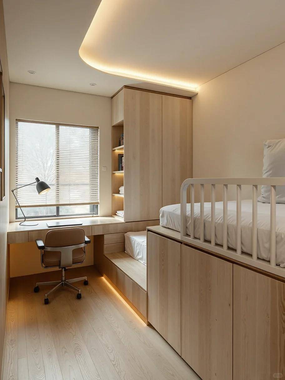 很多人觉得卧室小就只能将就安全炒股配资网,放张床、摆个衣柜就满了,想加张书桌都难。但邻居家 7㎡的小卧室,却靠一个 “抬高床” 的设计,实现了睡觉、学习、储物全功能,住起来比 16㎡的大卧室还舒服。其实,小空间的关键不是 “挤”,而是把每一寸空间都用对地方。