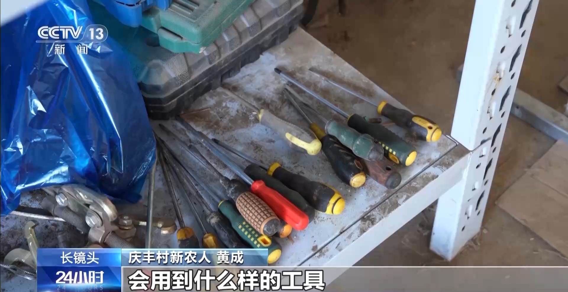 庆丰村新农人 黄成:开始我们自己也不知道会用到什么样的工具,看实际工作当中缺了什么工具,我们就再添置。